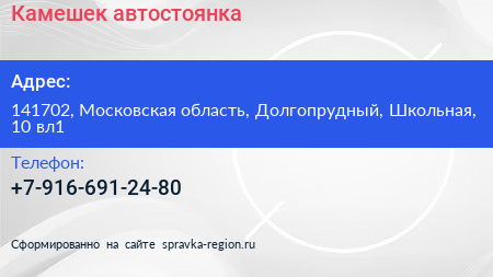 Камешек, автостоянка по адресу 141702, Московская область, Долгопрудный, Школьная, 10 вл1 в дальнейшем Организация, размещена в следующих категориях: