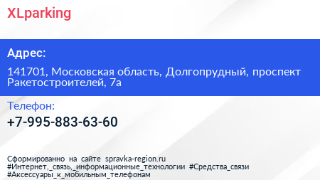 XLparking по адресу 141701, Московская область, Долгопрудный, проспект Ракетостроителей, 7а в дальнейшем Организация, размещена в следующих категориях: