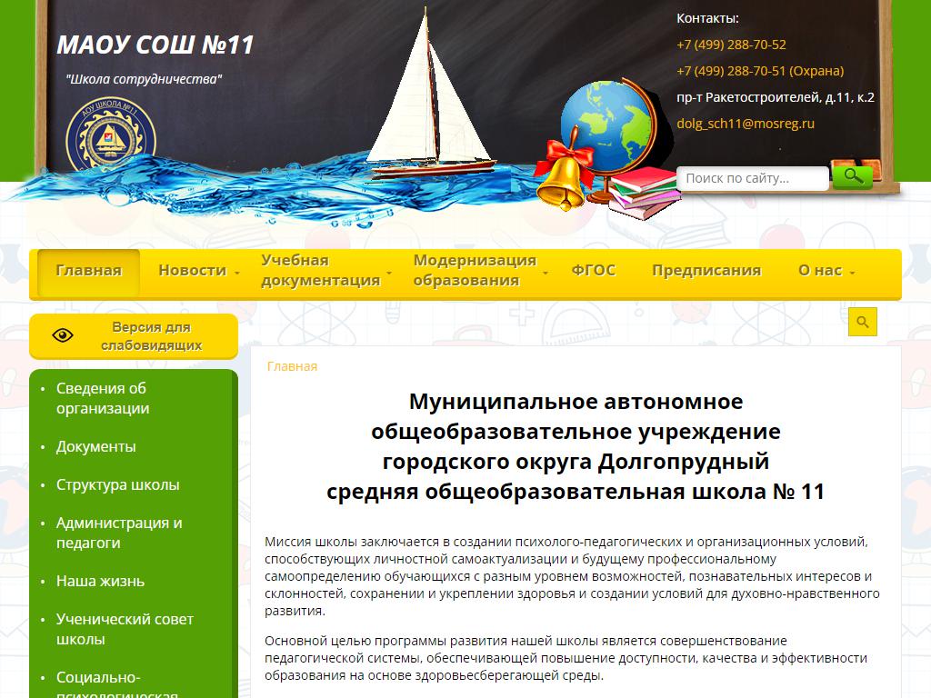 Средняя общеобразовательная школа №11 по адресу 141701, Московская область, Долгопрудный, проспект Ракетостроителей, 11 к2 в дальнейшем Организация, размещена в следующих категориях: