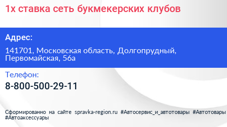1x ставка, сеть букмекерских клубов по адресу 141701, Московская область, Долгопрудный, Первомайская, 56а в дальнейшем Организация, размещена в следующих категориях: