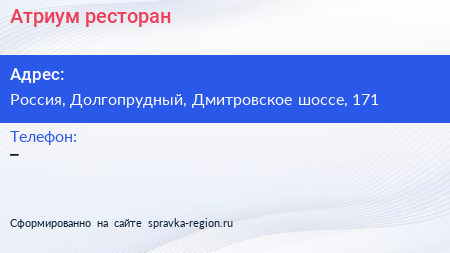 Атриум, ресторан по адресу Edge Vinogradovo, 171, Дмитровское шоссе (дублёр), Виноградово, Москва, городской округ Мытищи, Московская область, Центральный федеральный округ, 127204, Россия в дальнейшем Организация, размещена в следующих категориях: