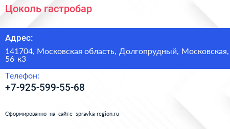 #Цоколь, гастробар по адресу 141704, Московская область, Долгопрудный, Московская, 56 к3 в дальнейшем Организация, размещена в следующих категориях: