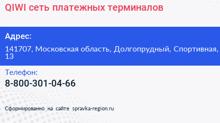 QIWI, сеть платежных терминалов по адресу 141707, Московская область, Долгопрудный, Спортивная, 13 в дальнейшем Организация, размещена в следующих категориях: