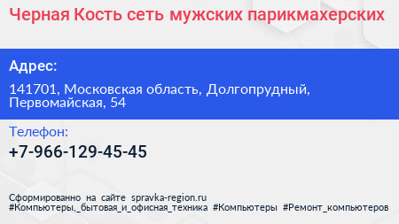 Черная Кость, сеть мужских парикмахерских по адресу 141701, Московская область, Долгопрудный, Первомайская, 54 в дальнейшем Организация, размещена в следующих категориях: