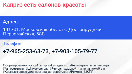 Каприз, сеть салонов красоты по адресу 141701, Московская область, Долгопрудный, Первомайская, 58Б в дальнейшем Организация, размещена в следующих категориях: