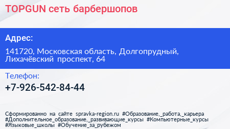 TOPGUN, сеть барбершопов по адресу 141720, Московская область, Долгопрудный, Лихачёвский проспект, 64 в дальнейшем Организация, размещена в следующих категориях: