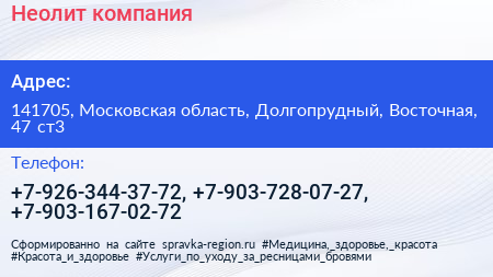 Неолит, компания по адресу 141705, Московская область, Долгопрудный, Восточная, 47 ст3 в дальнейшем Организация, размещена в следующих категориях: