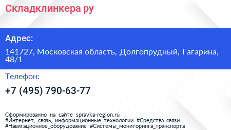 Складклинкера.ру по адресу 141727, Московская область, Долгопрудный, Гагарина, 48/1 в дальнейшем Организация, размещена в следующих категориях:
