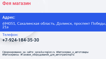 Фея, магазин по адресу 694051, Сахалинская область, Долинск, проспект Победы, 21а в дальнейшем Организация, размещена в следующих категориях:
