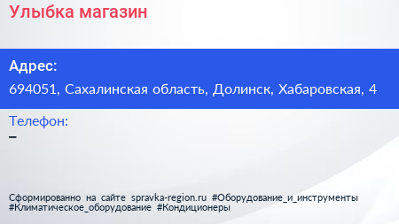 Улыбка, магазин по адресу 694051, Сахалинская область, Долинск, Хабаровская, 4 в дальнейшем Организация, размещена в следующих категориях: