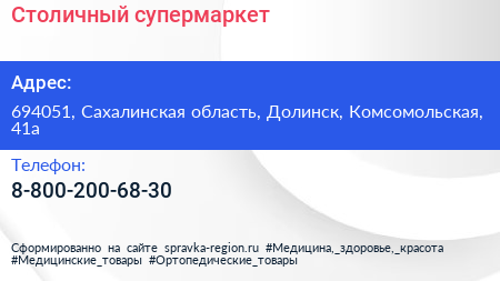Столичный, супермаркет по адресу 694051, Сахалинская область, Долинск, Комсомольская, 41а в дальнейшем Организация, размещена в следующих категориях: