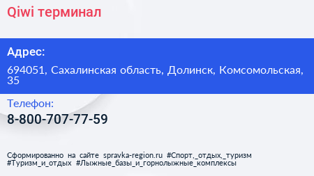 Qiwi, терминал по адресу 694051, Сахалинская область, Долинск, Комсомольская, 35 в дальнейшем Организация, размещена в следующих категориях: