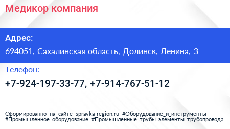 Медикор, компания по адресу 694051, Сахалинская область, Долинск, Ленина, 3 в дальнейшем Организация, размещена в следующих категориях: