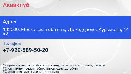 Акваклуб по адресу 142000, Московская область, Домодедово, Курыжова, 14 к2 в дальнейшем Организация, размещена в следующих категориях: