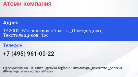 Атеми, компания по адресу 142002, Московская область, Домодедово, Текстильщиков, 1ж в дальнейшем Организация, размещена в следующих категориях: