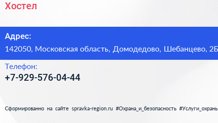Хостел по адресу 142050, Московская область, Домодедово, Шебанцево, 2Б в дальнейшем Организация, размещена в следующих категориях: