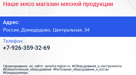 Наше мясо, магазин мясной продукции по адресу 34, Центральная улица, посёлок Государственного Племенного Завода "Константиново", городской округ Домодедово, Московская область, Центральный федеральный округ, 142029, Россия в дальнейшем Организация, размещена в следующих категориях: