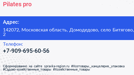 Pilates-pro по адресу 142072, Московская область, Домодедово, село Битягово, 2 в дальнейшем Организация, размещена в следующих категориях: