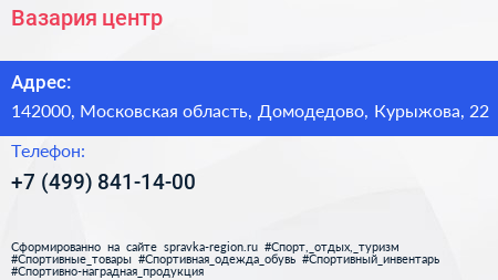 Вазария, центр по адресу 142000, Московская область, Домодедово, Курыжова, 22 в дальнейшем Организация, размещена в следующих категориях: