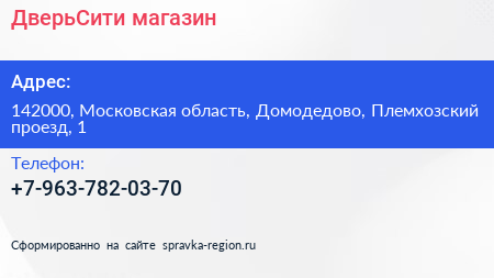 ДверьСити, магазин по адресу 142000, Московская область, Домодедово, Племхозский проезд, 1 в дальнейшем Организация, размещена в следующих категориях: