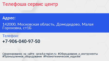 Телефоша, сервис-центр по адресу 142000, Московская область, Домодедово, Малая Гороховка, ст1Б в дальнейшем Организация, размещена в следующих категориях: