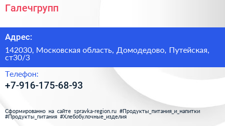 Галечгрупп по адресу 142030, Московская область, Домодедово, Путейская, ст30/3 в дальнейшем Организация, размещена в следующих категориях: