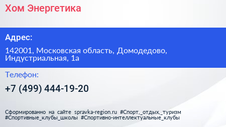 Хом-Энергетика по адресу 142001, Московская область, Домодедово, Индустриальная, 1а в дальнейшем Организация, размещена в следующих категориях:
