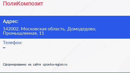 ПолиКомпозит по адресу 142002, Московская область, Домодедово, Промышленная, 11 в дальнейшем Организация, размещена в следующих категориях:
