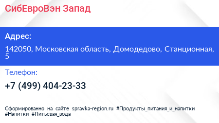 СибЕвроВэн Запад по адресу 142050, Московская область, Домодедово, Станционная, 5 в дальнейшем Организация, размещена в следующих категориях: