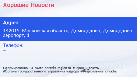 Хорошие Новости по адресу 142015, Московская область, Домодедово, Домодедово аэропорт, 1 в дальнейшем Организация, размещена в следующих категориях: