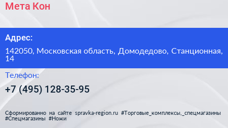 Мета-Кон по адресу 142050, Московская область, Домодедово, Станционная, 14 в дальнейшем Организация, размещена в следующих категориях: