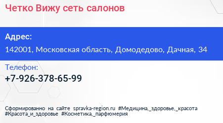 Четко Вижу, сеть салонов по адресу 142001, Московская область, Домодедово, Дачная, 34 в дальнейшем Организация, размещена в следующих категориях: