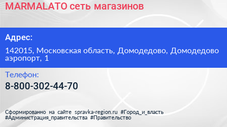MARMALATO, сеть магазинов по адресу 142015, Московская область, Домодедово, Домодедово аэропорт, 1 в дальнейшем Организация, размещена в следующих категориях: