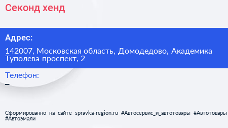 Секонд-хенд по адресу 142007, Московская область, Домодедово, Академика Туполева проспект, 2 в дальнейшем Организация, размещена в следующих категориях: