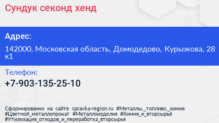 Сундук, секонд-хенд по адресу 142000, Московская область, Домодедово, Курыжова, 28 к1 в дальнейшем Организация, размещена в следующих категориях: