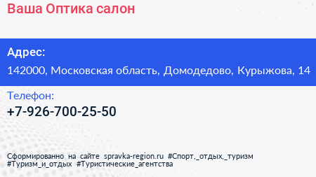 Ваша Оптика, салон по адресу 142000, Московская область, Домодедово, Курыжова, 14 в дальнейшем Организация, размещена в следующих категориях: