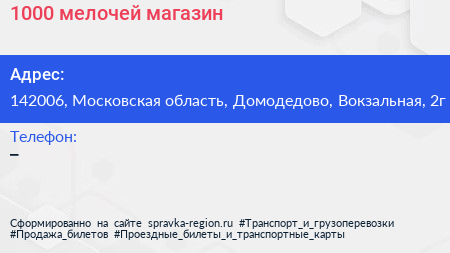 1000 мелочей, магазин по адресу 142006, Московская область, Домодедово, Вокзальная, 2г в дальнейшем Организация, размещена в следующих категориях: