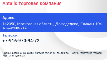 Antalis, торговая компания по адресу 142050, Московская область, Домодедово, Склады 104 владение, ст2 в дальнейшем Организация, размещена в следующих категориях: