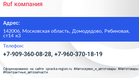 Ruf, компания по адресу 142006, Московская область, Домодедово, Рябиновая, ст14 к3 в дальнейшем Организация, размещена в следующих категориях:
