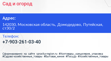 Сад и огород по адресу 142030, Московская область, Домодедово, Путейская, ст30/2 в дальнейшем Организация, размещена в следующих категориях: