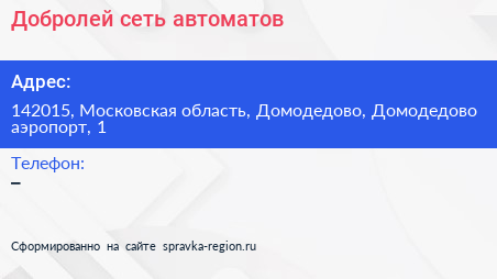 Добролей, сеть автоматов по адресу 142015, Московская область, Домодедово, Домодедово аэропорт, 1 в дальнейшем Организация, размещена в следующих категориях: