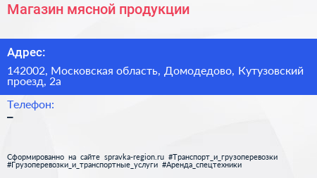 Магазин мясной продукции по адресу 142002, Московская область, Домодедово, Кутузовский проезд, 2а в дальнейшем Организация, размещена в следующих категориях: