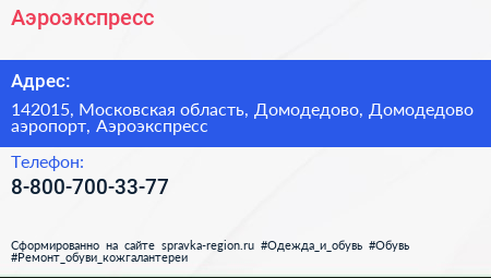 Аэроэкспресс по адресу 142015, Московская область, Домодедово, Домодедово аэропорт, Аэроэкспресс в дальнейшем Организация, размещена в следующих категориях: