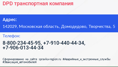 DPD, транспортная компания по адресу 142029, Московская область, Домодедово, Творчества, 5 в дальнейшем Организация, размещена в следующих категориях: