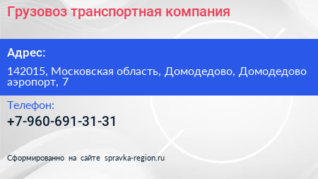 Грузовоз, транспортная компания по адресу 142015, Московская область, Домодедово, Домодедово аэропорт, 7 в дальнейшем Организация, размещена в следующих категориях: