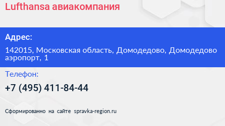 Lufthansa, авиакомпания по адресу 142015, Московская область, Домодедово, Домодедово аэропорт, 1 в дальнейшем Организация, размещена в следующих категориях: