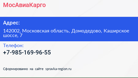 МосАвиаКарго по адресу 142002, Московская область, Домодедово, Каширское шоссе, 7 в дальнейшем Организация, размещена в следующих категориях: