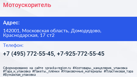 Мотоускоритель по адресу 142001, Московская область, Домодедово, Краснодарская, 17 ст2 в дальнейшем Организация, размещена в следующих категориях: