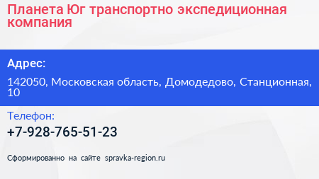 Планета Юг, транспортно-экспедиционная компания по адресу 142050, Московская область, Домодедово, Станционная, 10 в дальнейшем Организация, размещена в следующих категориях: