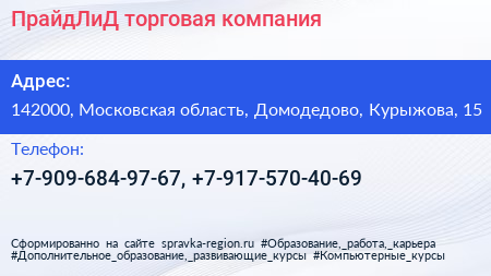 ПрайдЛиД, торговая компания по адресу 142000, Московская область, Домодедово, Курыжова, 15 в дальнейшем Организация, размещена в следующих категориях: